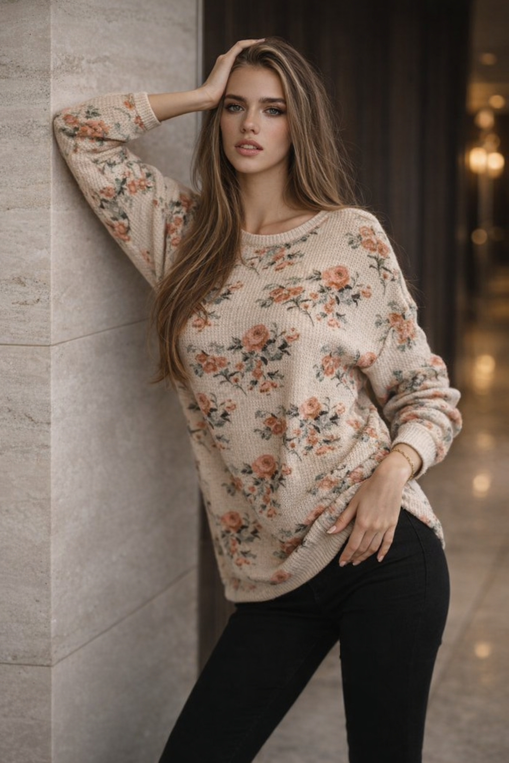 A cozy waffle texture meets romantic rose print for a relaxed top that’s as comfy as it is pretty.Stretchy waffle knit